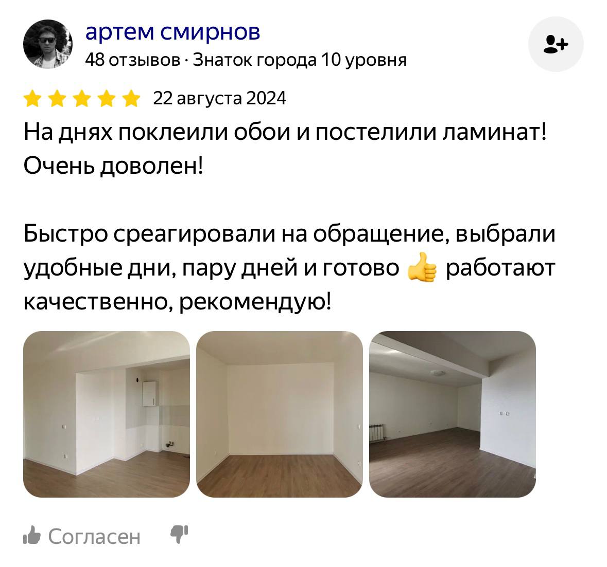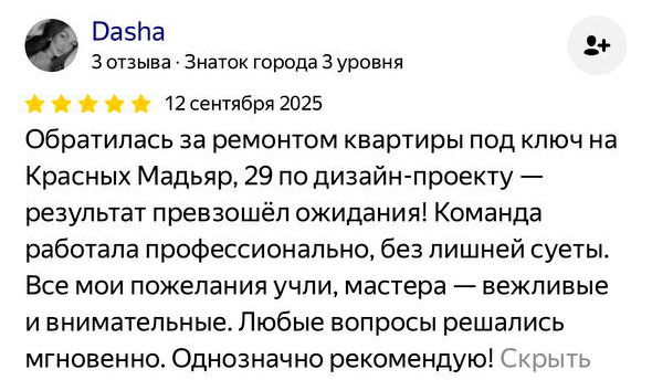 Работаете только с проверенными мастерами — без подрядчиков с улицы.